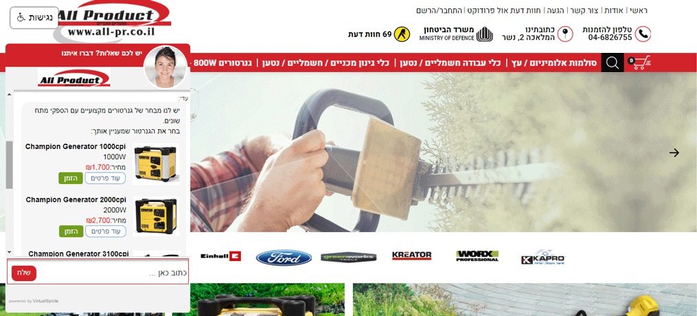 צ'אט בוט למסחר מקוון – All-pr, חנות מקוונת למוצרי גינון